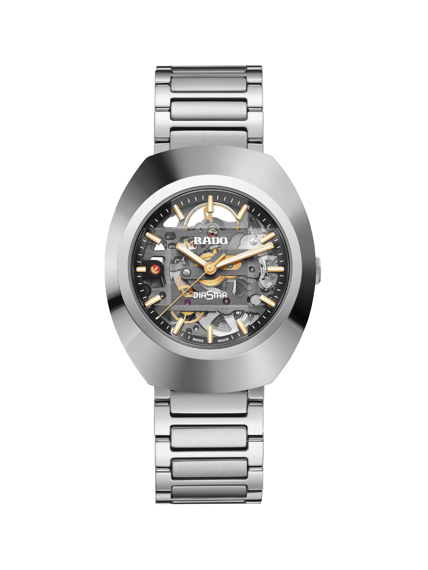 تتميز ساعة DiaStar Original الفريدة هذه بقطر 38 مم ومقاومة للماء حتى عمق 100 متر. تزدان الساعة بإطار من السيراميك سيراموس عالي اللمعان بلمسة نهائية مصقولة وحواف حادة وتفاصيل دقيقة، مما يُكمل علبة الساعة المصنوعة من الفولاذ المقاوم للصدأ أحادي اللون بشكل مثالي. ويُضفي زجاج الياقوت ذو القطع المتوازي لمسة من الأناقة. تأتي الساعة مزودة بميناء رمادي داكن مصقول مرتين، وعقارب مطلية بالروديوم (مغطاة بطبقة مضيئة بيضاء من Super-LumiNova)، ونافذة لعرض التاريخ بلون مطابق للميناء. وتحتوي الساعة في داخلها على حركة رادو R764 الأوتوماتيكية بتقنية Nivachron™ المضادة للمغناطيسية واحتياطي طاقة يصل إلى 80 ساعة. أما السوار فهو مصنوع من الفولاذ المقاوم للصدأ المصقول والمصقول بالفرشاة.