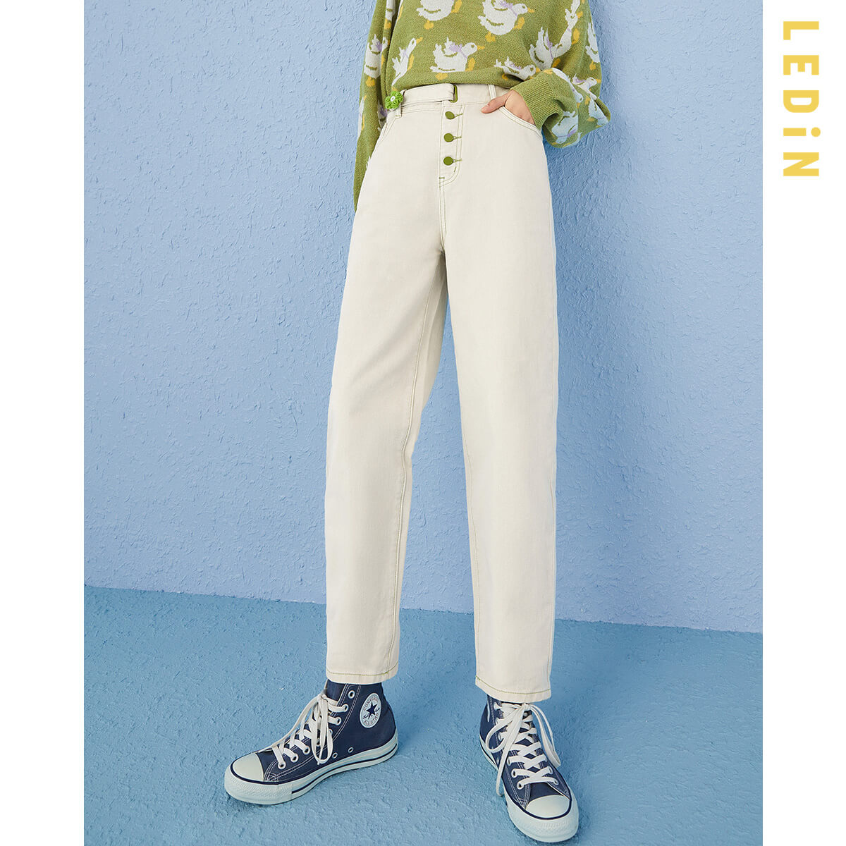 5分鐘前直筒牛仔褲女2021年春季新款褲子女裝童趣花花牛仔褲寬鬆 - 套餐一 1入-NT$1099