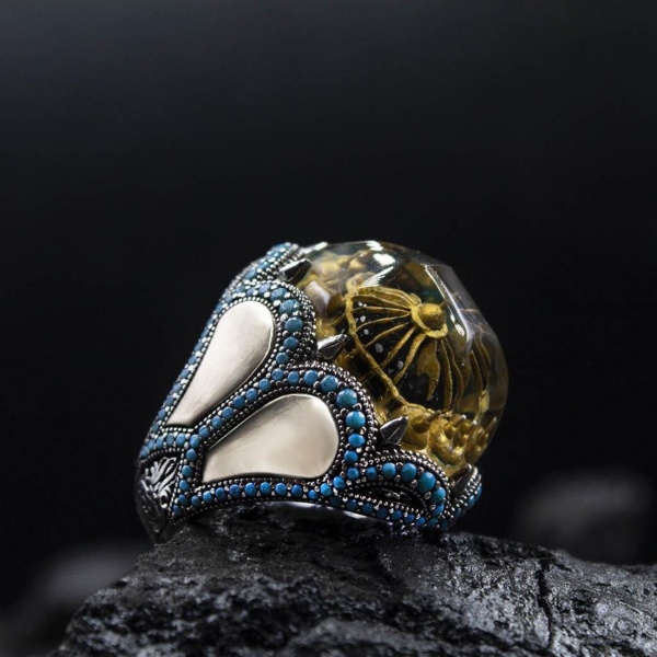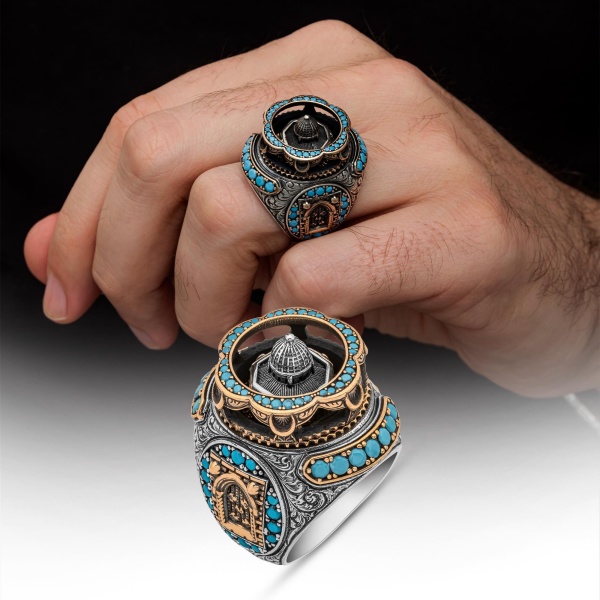 قبل نصف ساعة خاتم مصنوع يدويًا من الفضة الإسترلينية عيار 925 على شكل تمثال مسجد فيروزي - 08
