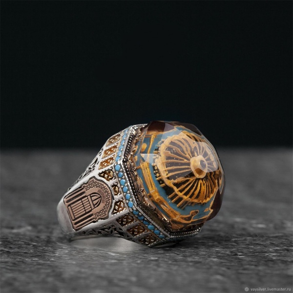 قبل نصف ساعة خاتم مصنوع يدويًا من الفضة الإسترلينية عيار 925 على شكل تمثال مسجد فيروزي - 06