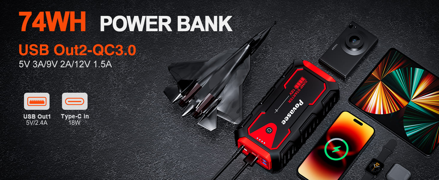 قبل 5 دقائق جهاز تشغيل السيارة في حالات الطوارئ Povasee 5000A - A30